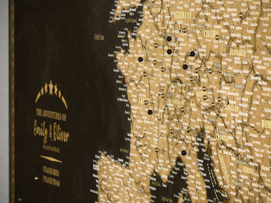 Carte de l’Europe Personnalisée sur Toile avec Épingles - Golden Travels