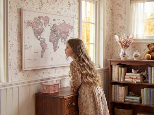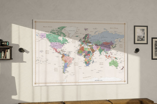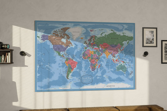 Carte du Monde Personnalisée sur Toile avec Épingles - Pastel