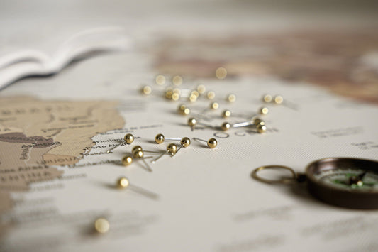 Carte du Monde Personnalisée sur Toile avec Épingles - Rose des Vents