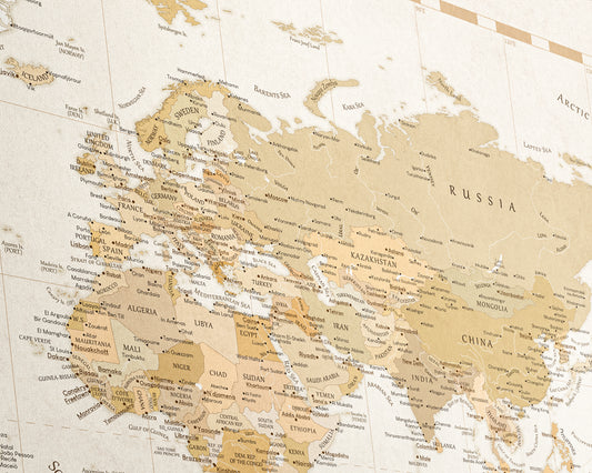 Carte du Monde Personnalisée sur Toile avec Épingles - Desert Tones